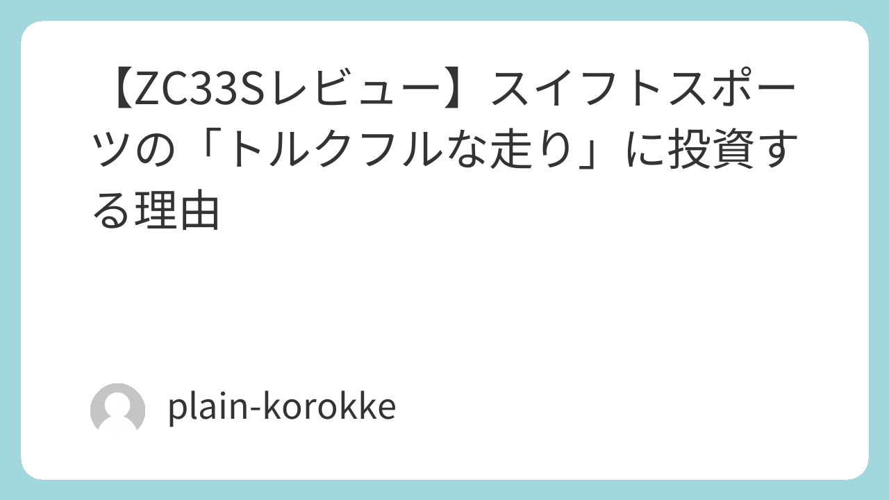 ZC33Sは、スポーツカーというジャンルでありながら、長距離移動における疲労軽減という極めて実用的な機能に特化することで、私の生活のQOLを持続的に支える素の土台となりました。同時に、不要なブランドや広さといった装飾を割り切ることで、経済的なコストを排除しました。